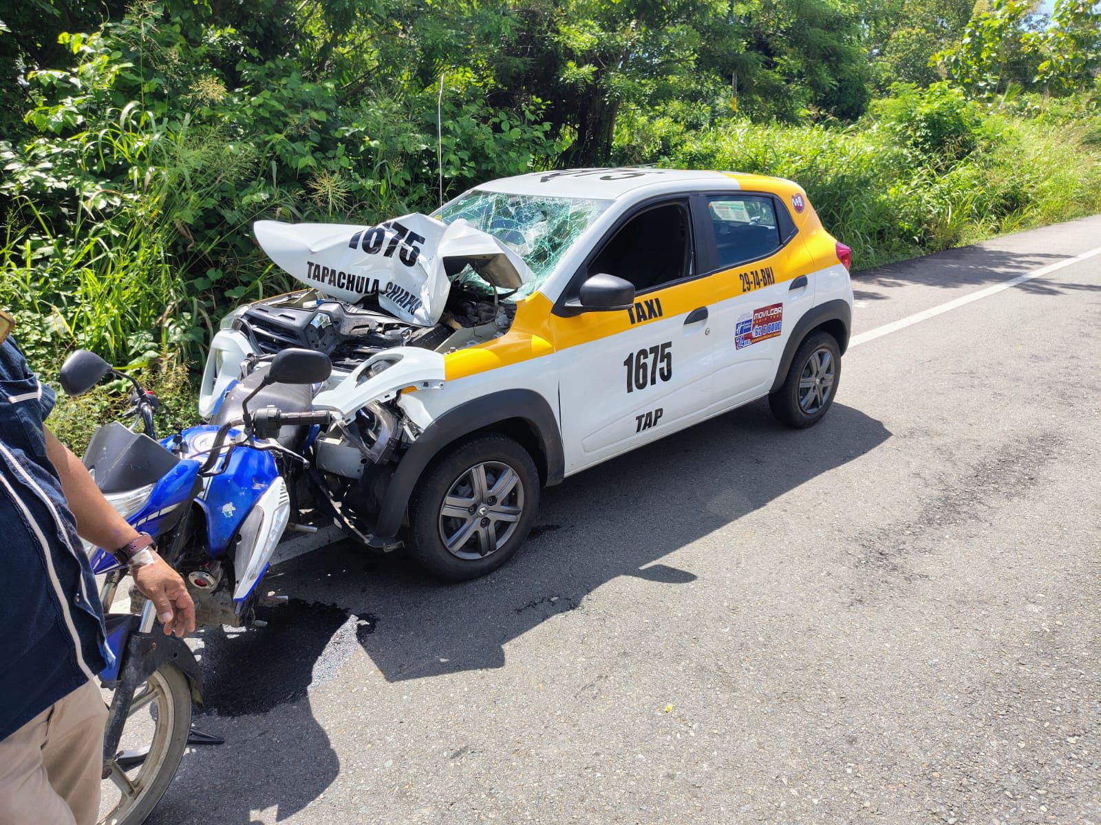 De acuerdo con información preliminar, un taxi local de Tapachula, con número económico 1675, arrolló a una familia que se desplazaba a bordo de una motocicleta Italika 125Z color azul.