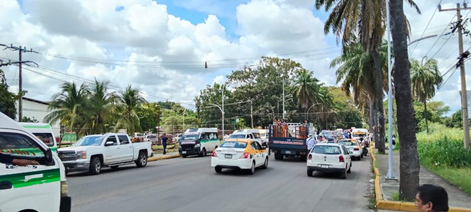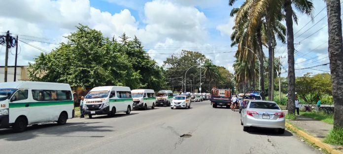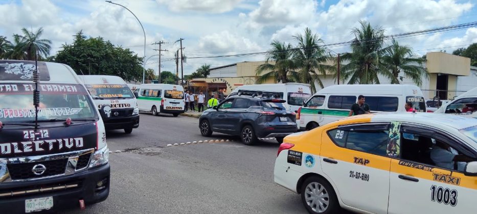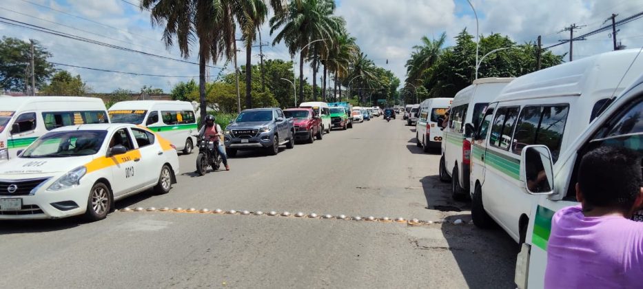 Conductores de colectivos de la ruta cobach, el Carmen y solidaridad 2000 se manifestaron por la mañana de este lunes en la carretera antigua aeropuerto, cerca de las instalaciones de Cobach 08, la cual bloquearon por unos minutos.