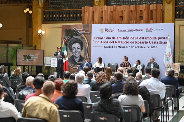 El gobernador Eduardo Ramírez Aguilar asistió como invitado de honor a la ceremonia por el primer día de emisión de la serie de estampillas postales “100 años del Natalicio de Rosario Castellanos”, realizada en el Palacio Postal en la Ciudad de México. En este marco, enfatizó que la destacada escritora y poeta fue una mujer universal, reconocida por su lucha a favor de la liberación femenina, la pluralidad y la apertura del indigenismo mexicano y latinoamericano, así como por su impulso a la alfabetización.