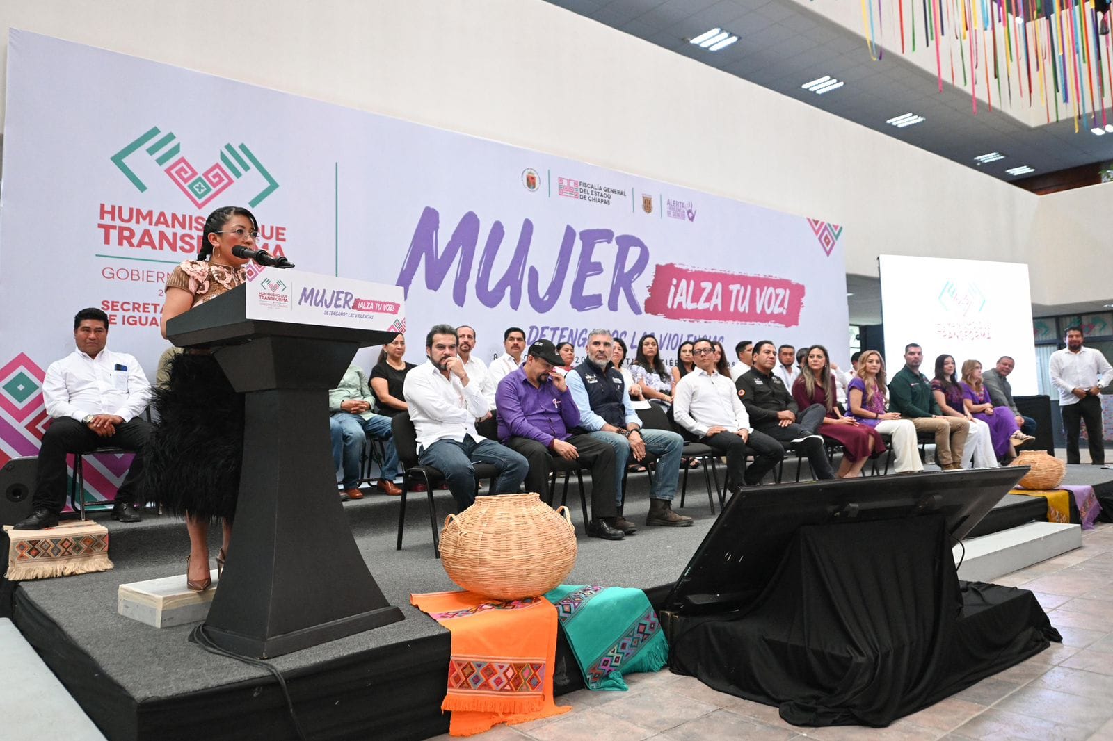 La presidenta de la Mesa Directiva del Congreso del Estado, Alejandra Gómez Mendoza, reconoció a Eduardo Ramírez por impulsar políticas públicas a favor de la igualdad de género y por ser un aliado de las mujeres, al instituir que cada día 8 de mes se realicen actividades para visibilizar sus causas. Indicó que las violencias en Chiapas son diversas y afectan principalmente a mujeres indígenas, rurales, migrantes y desaparecidas, por lo que celebró las acciones orientadas a revertir las desventajas históricas y fortalecer la igualdad sustantiva.