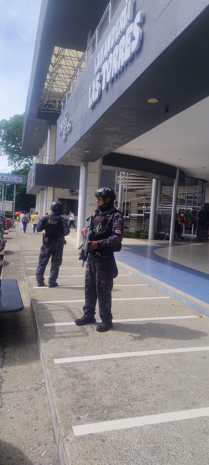 Con el fin de garantizar la seguridad de las personas y los bienes de las mismas, además de brindar apoyo a la ciudadanía, elementos de la FRIP recorrieron pie-tierra las plazas comerciales denominadas Alaia, Las Torres y Galerías Tapachula, al tiempo de realizar proximidad social con la ciudadanía en general.