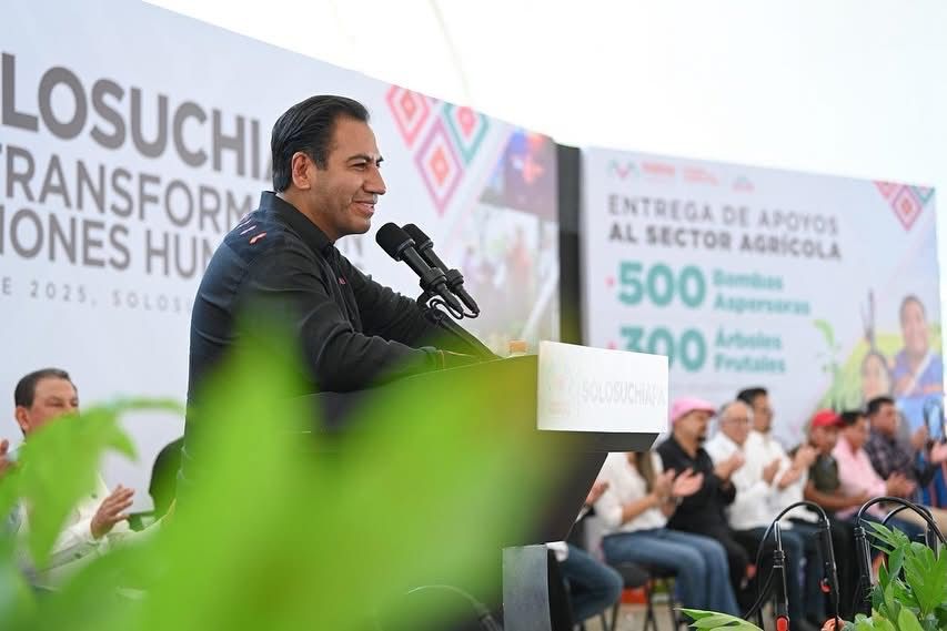 El secretario de Agricultura, Ganadería y Pesca, Marco Antonio Barba Arrocha, informó que la entrega de mil bombas aspersoras y 600 árboles frutales en Solosuchiapa e Ixtapangajoya fortalecerá la producción agropecuaria y la reforestación. Subrayó que el campo es prioridad para el gobernador y recordó que, con la Nueva ERA, las y los productores cuentan con un seguro ganadero que protege el 100 por ciento de su patrimonio ante desastres naturales. Añadió que se abrirán nuevas rutas de recolección de Liconsa, con un precio preferencial de 11.50 pesos por litro de leche, en beneficio de la región Norte.