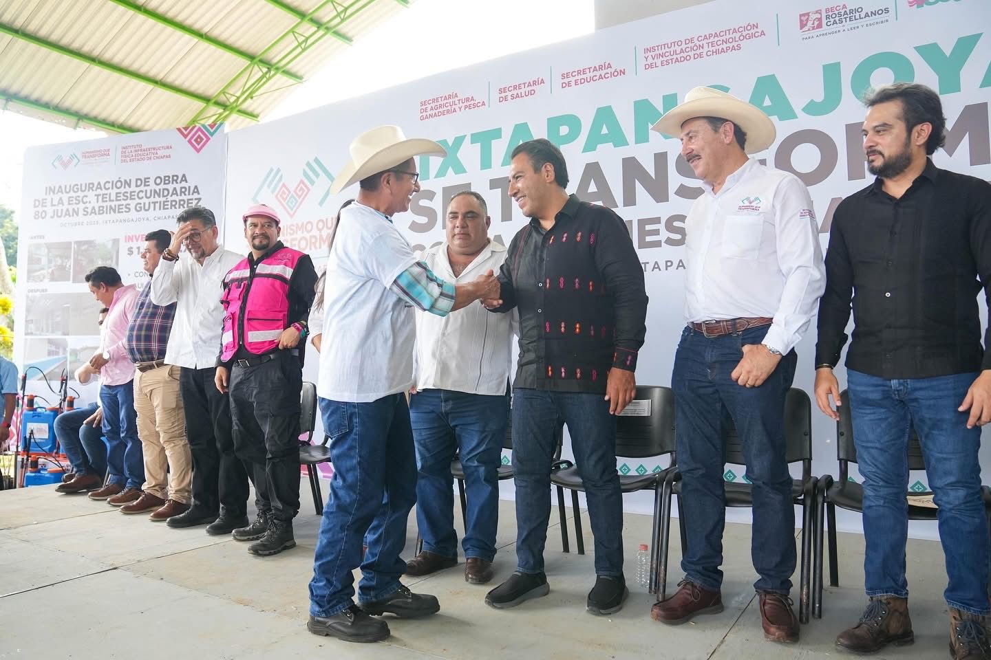 En Ixtapangajoya, aseguró que la región Norte “no será la más olvidada”, pues su desarrollo es ahora una prioridad. En este contexto, entregó becas Rosario Castellanos para la alfabetización e insumos agrícolas; inauguró infraestructura educativa en la Telesecundaria 80 Juan Sabines Gutiérrez, y anunció la rehabilitación de caminos para mejorar la conectividad y movilidad entre municipios, además del proyecto del sistema de agua potable municipal.
