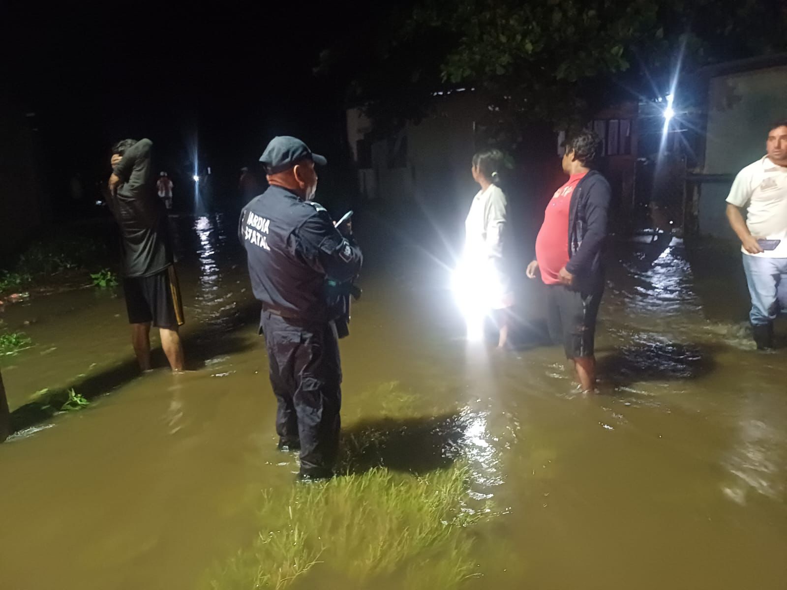 Como parte de los programas de proximidad social de la SSP, elementos guardias estatales acudieron a la ranchería Guadalupe del municipio de Escuintla para brindar apoyo a los pobladores, quienes sufrieron encharcamientos en sus domicilios.
