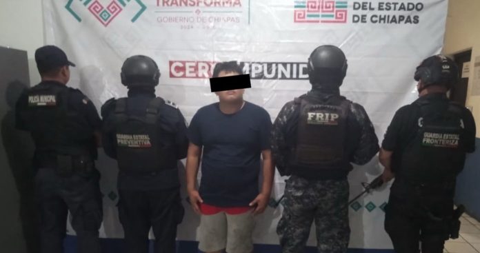 La Secretaría de Seguridad del Pueblo (SSP) a través de la Fuerza de Reacción Inmediata Pakal (FRIP), la Guardia Estatal Preventiva y la Guardia Estatal Fronteriza, en coordinación con la Fiscalía General del Estado (FGE) y la Secretaría de Seguridad y Protección Ciudadana (SSPC) del Gobierno Federal, detuvieron a un masculino presunto responsable del delito de violencia familiar, en el municipio de Tuxtla Chico.