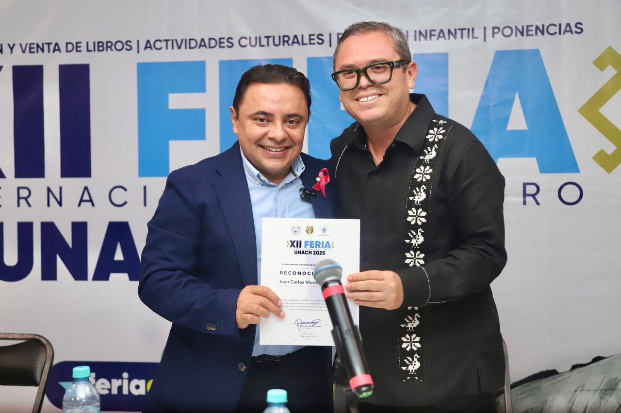 Atendiendo a la invitación realizada por la máxima casa de estudios en Chiapas, el magistrado presidente del Tribunal Superior de Justicia y del Consejo de la Judicatura, Juan Carlos Moreno Guillén, participó como moderador en la presentación del libro “Tribunal incómodo: las reacciones (Backlash) a las sentencias de un tribunal constitucional”, en el marco de la XII Feria Internacional del Libro Unach 2025.