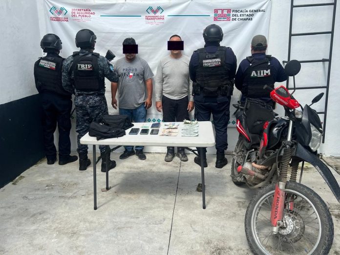 La Secretaría de Seguridad del Pueblo (SSP) a través de la Fuerza de Reacción Inmediata Pakal (FRIP), la Guardia Estatal Preventiva y la Guardia Estatal Fronteriza en coordinación con la Agencia de Investigación e Inteligencia Ministerial (AIIM) de la Fiscalía General del Estado (FGE) y la Secretaría de Seguridad y Protección Ciudadana (SSPC) del Gobierno Federal, detuvieron a dos masculinos por el posible delito de resistencia de particulares en el municipio de Suchiate.