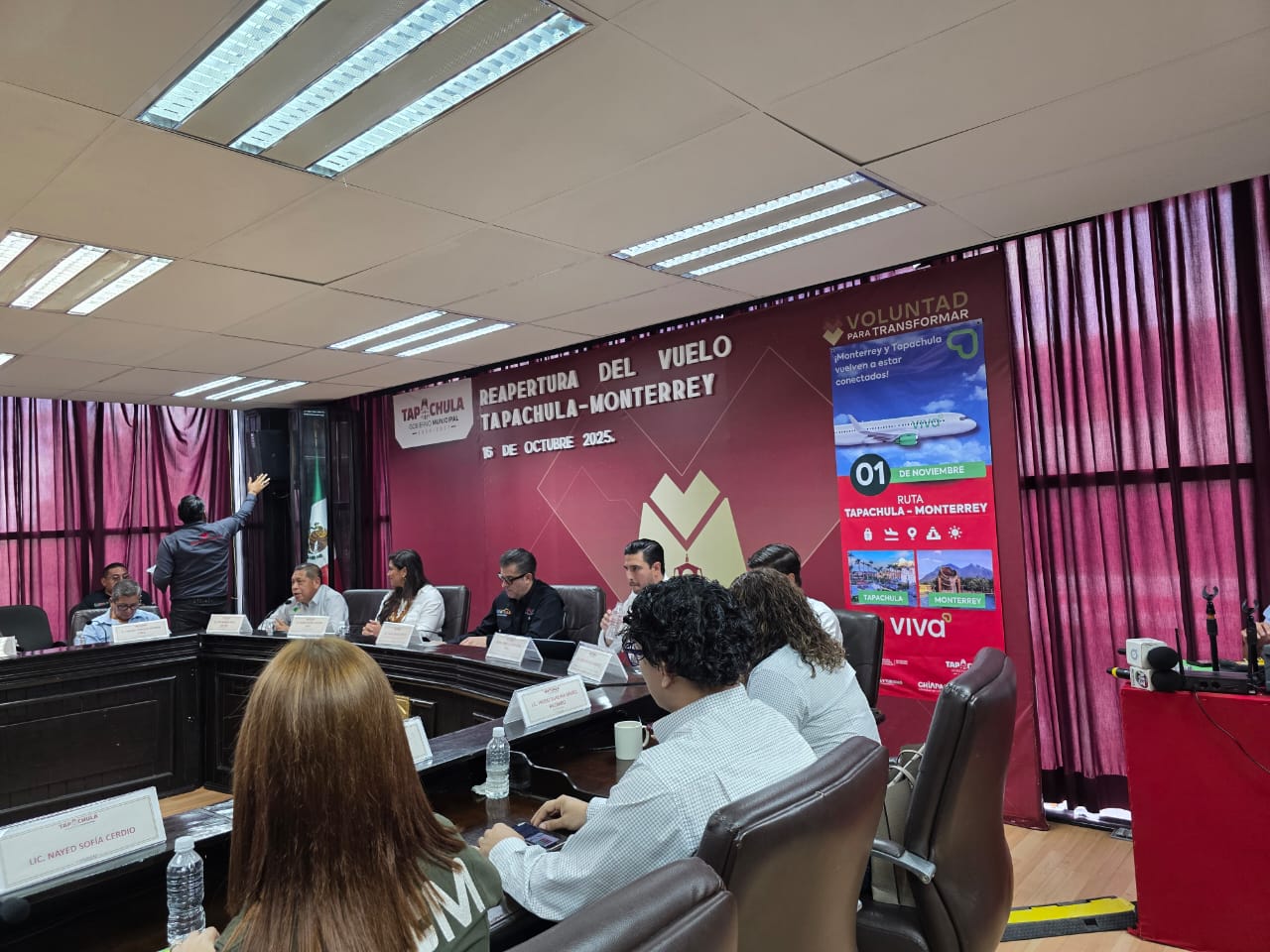 Da inicio la conferencia de prensa de la Reapertura del Vuelo Tapachula – Monterrey por la aerolínea viva aerobus.