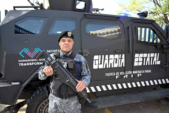 El secretario de Seguridad del Pueblo, Óscar Alberto Aparicio Avendaño, informó que, como parte del fortalecimiento a la seguridad pública, se entregaron 250 cámaras inteligentes que portarán los elementos de la FRIP, las cuales permitirán monitorear en tiempo real su desempeño desde el C5, garantizando transparencia y confianza ciudadana. Agregó que este equipamiento se suma a 35 vehículos tácticos ligeros blindados, un helicóptero Black Hawk, tres drones artillados y tres aviones no tripulados, que refuerzan la capacidad operativa de esta fuerza integrada por más de 700 elementos.
