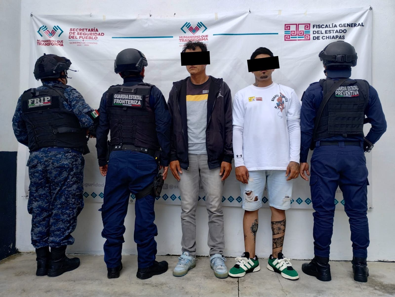 La Secretaría de Seguridad del Pueblo (SSP) a través de la Fuerza de Reacción Inmediata Pakal (FRIP), la Guardia Estatal Fronteriza y Guardia Estatal Preventiva, en coordinación con la Fiscalía General del Estado (FGE) y la Secretaría de Seguridad y Protección Ciudadana (SSPC) del Gobierno Federal, detuvieron a dos personas de nacionalidad colombiana por los probables delitos de lesiones y amenazas, en el municipio de Cacahoatán.