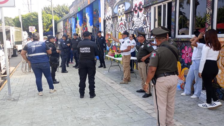 Autoridades de diferentes corporaciones de seguridad realizan operativos de vigilancia, para garantizar la paz y tranquilidad de visitantes en los principales campos santos en #Tapachula. EL ORBE/ Mesa de Redacción.