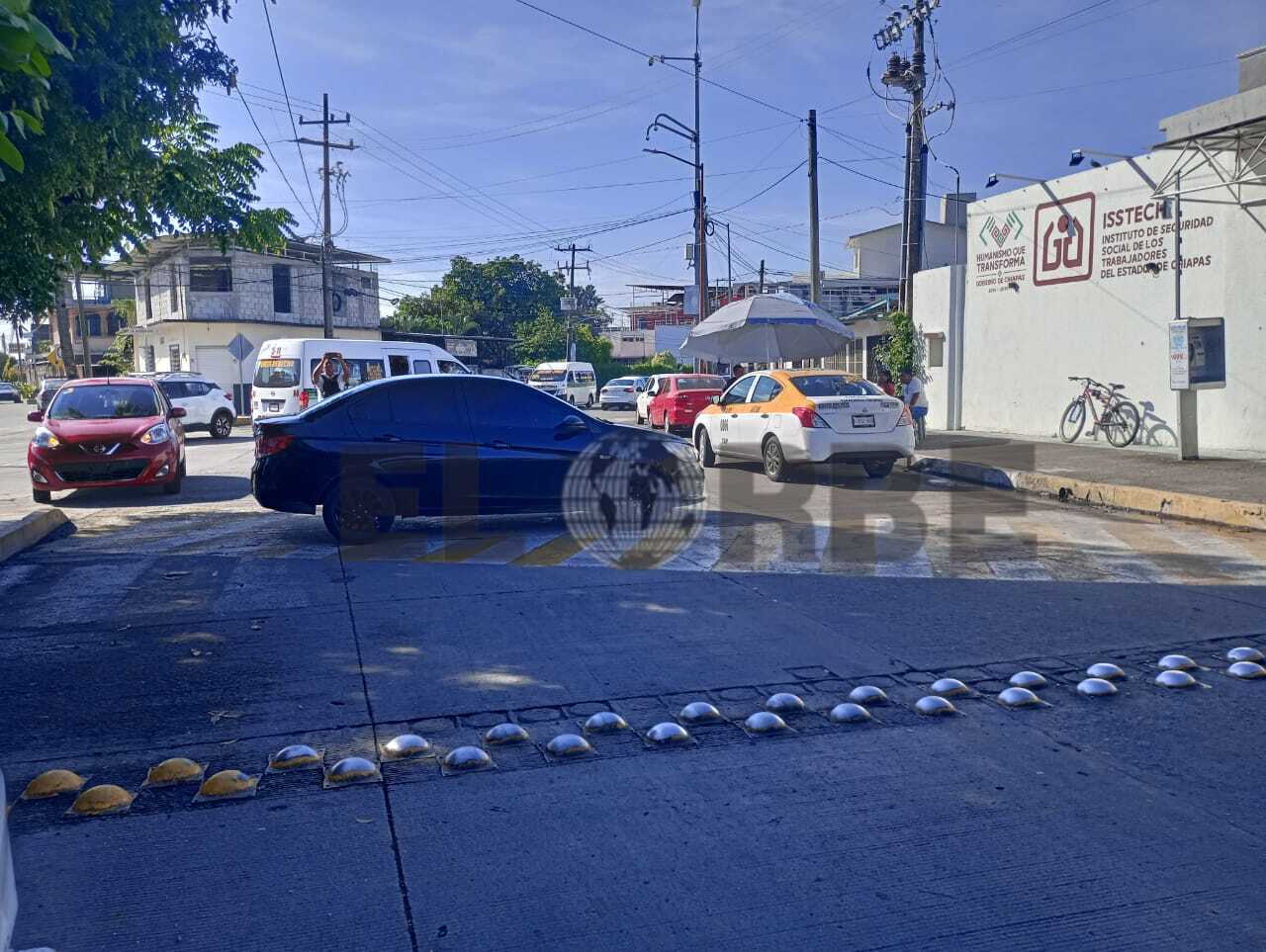 Esta mañana 8:50 horas los maestros bloquean la calles de la tercera sur y toman las instalaciones de la clínica hospital del ISSTECH. EL ORBE/ Mesa de Redacción.