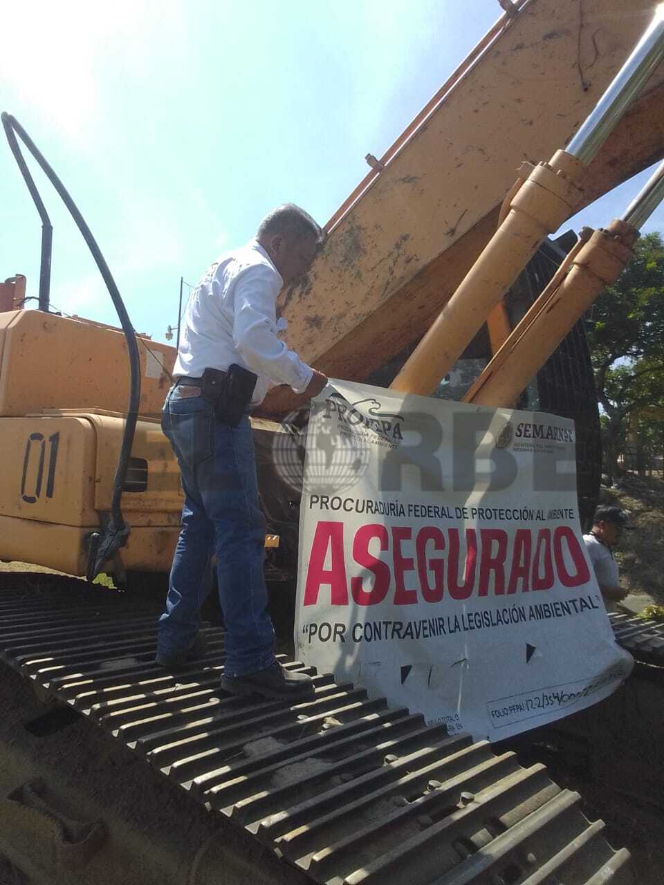 Suchiate, Chiapas 13 de Noviembre del 2025.- Personal de la Profepa acudió por la tarde de este jueves a retirar los sellos de seguramiento y clausura en la maquinaria propiedad de los ejidatarios y del distrito de riego No. 46 en Suchiate, Chiapas.