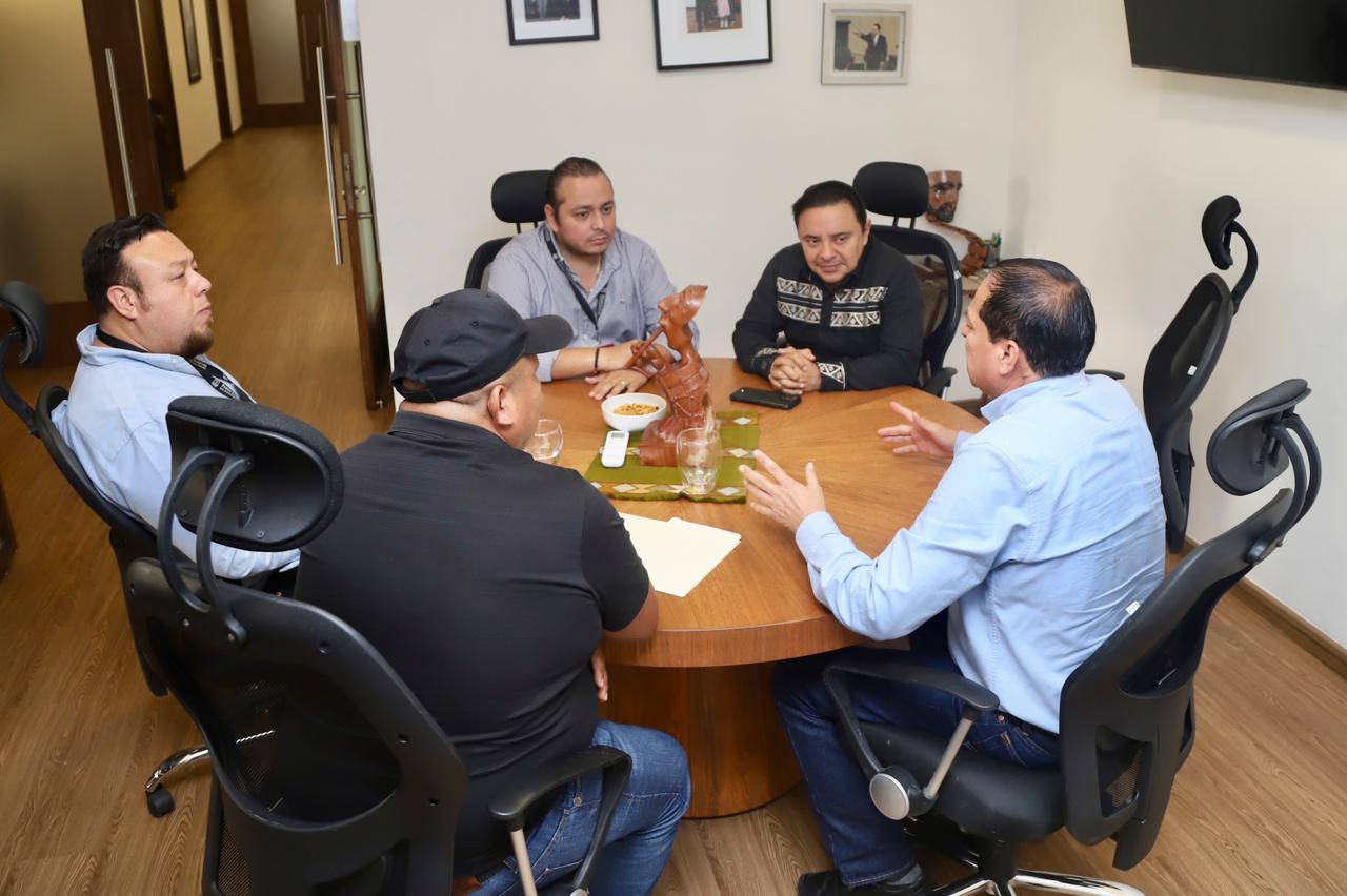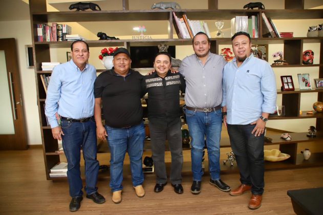 El magistrado presidente del Tribunal Superior de Justicia y del Consejo de la Judicatura, Juan Carlos Moreno Guillén, sostuvo una reunión de trabajo con los presidentes municipales de Jitotol, José Gregorio Pérez Molina; de Huixtla, Regulo Palomeque Sánchez; de Huehuetán, Sixto López Pérez; y de Pichucalco, Andrés Carballo Córdova.