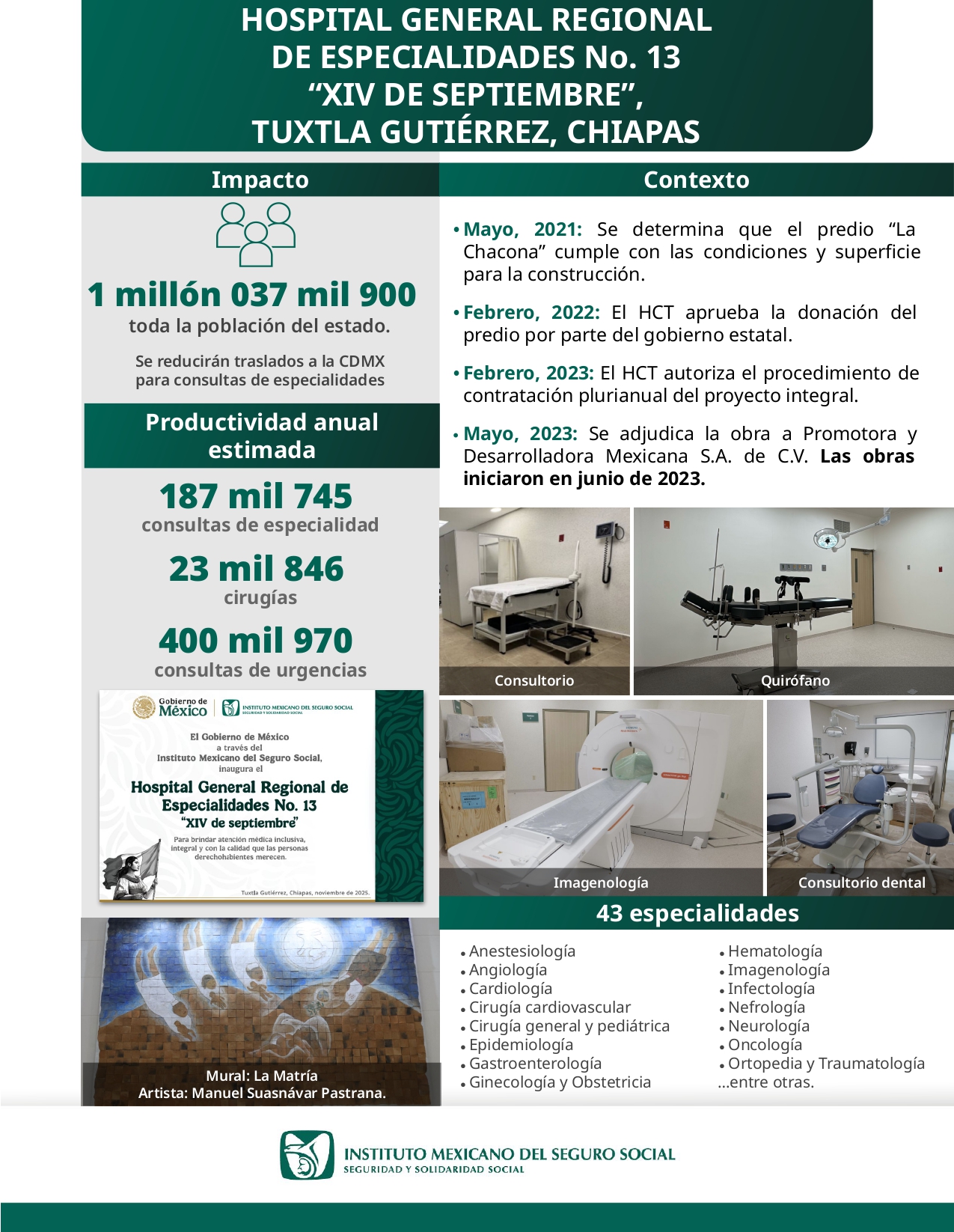 Infografía 3: HOSPITAL GENERAL REGIONAL DE ESPECIALIDADES No. 13 “XIV DE SEPTIEMBRE”, TUXTLA GUTIÉRREZ, CHIAPAS