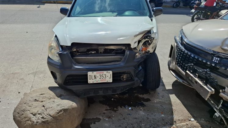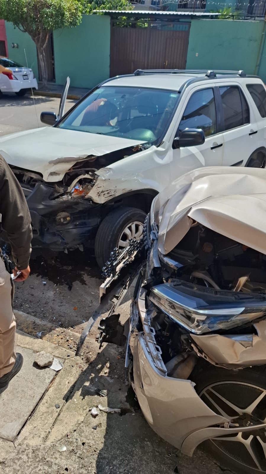 Tapachula, Chiapas a 24 de noviembre de 2025.- Un aparatoso accidente vehicular se registró alrededor de la una con veinte minutos de esta tarde en la intersección de la 13ª Sur y 20ª Calle Oriente, donde dos camionetas colisionaron.