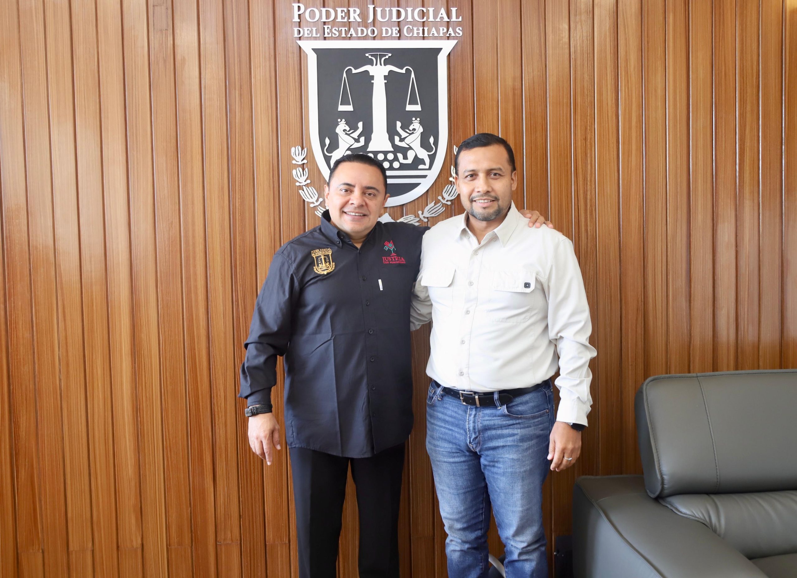 El magistrado presidente del Tribunal Superior de Justicia y del Consejo de la Judicatura, Juan Carlos Moreno Guillén, sostuvo un encuentro con el presidente municipal de Cintalapa de Figueroa, Ernesto Cruz Díaz, en la sede judicial de Tuxtla Gutiérrez.