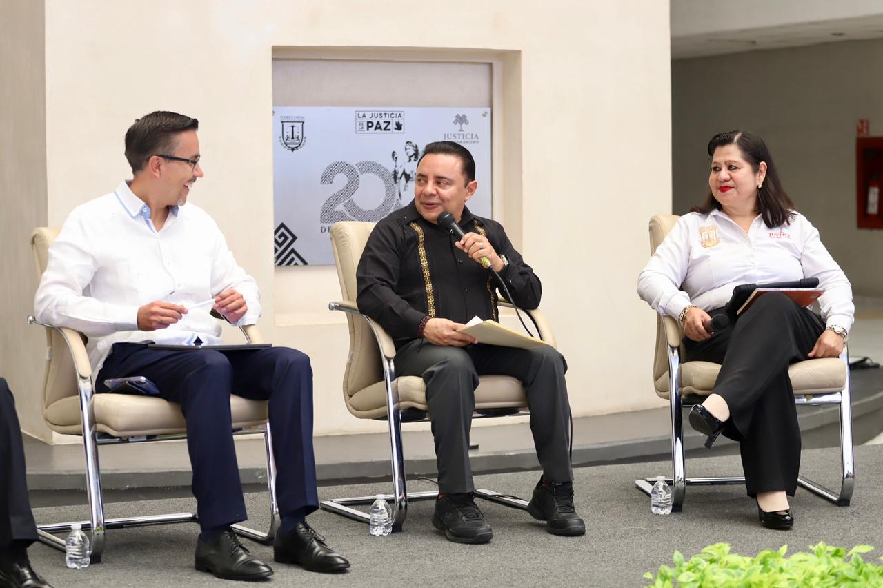 Para finalizar la jornada, los magistrados Juan Carlos Moreno Guillén y Sergio Javier Molina Martínez celebraron la Firma del Convenio Institucional entre el Poder Judicial del Estado y la Escuela Nacional de Formación Judicial, un acuerdo que permitirá ampliar las oportunidades de capacitación y colaboración interinstitucional, impulsando la profesionalización continua como herramienta clave para una justicia más cercana, transparente y orientada a la resolución pacífica de los conflictos.