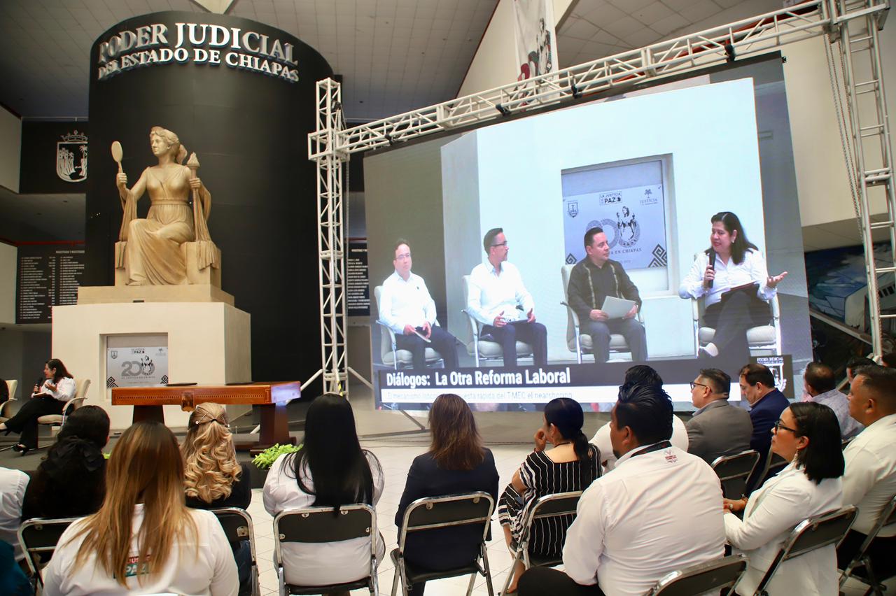 El Poder Judicial del Estado de Chiapas realizó el encuentro “Diálogos: La otra Reforma Laboral. El mecanismo laboral de respuesta rápida del T-MEC y el nearshoring”, actividad realizada en coordinación con la Escuela Nacional de Formación Judicial, con el propósito de promover el análisis, la actualización y la reflexión colectiva en torno a los nuevos escenarios laborales en México.