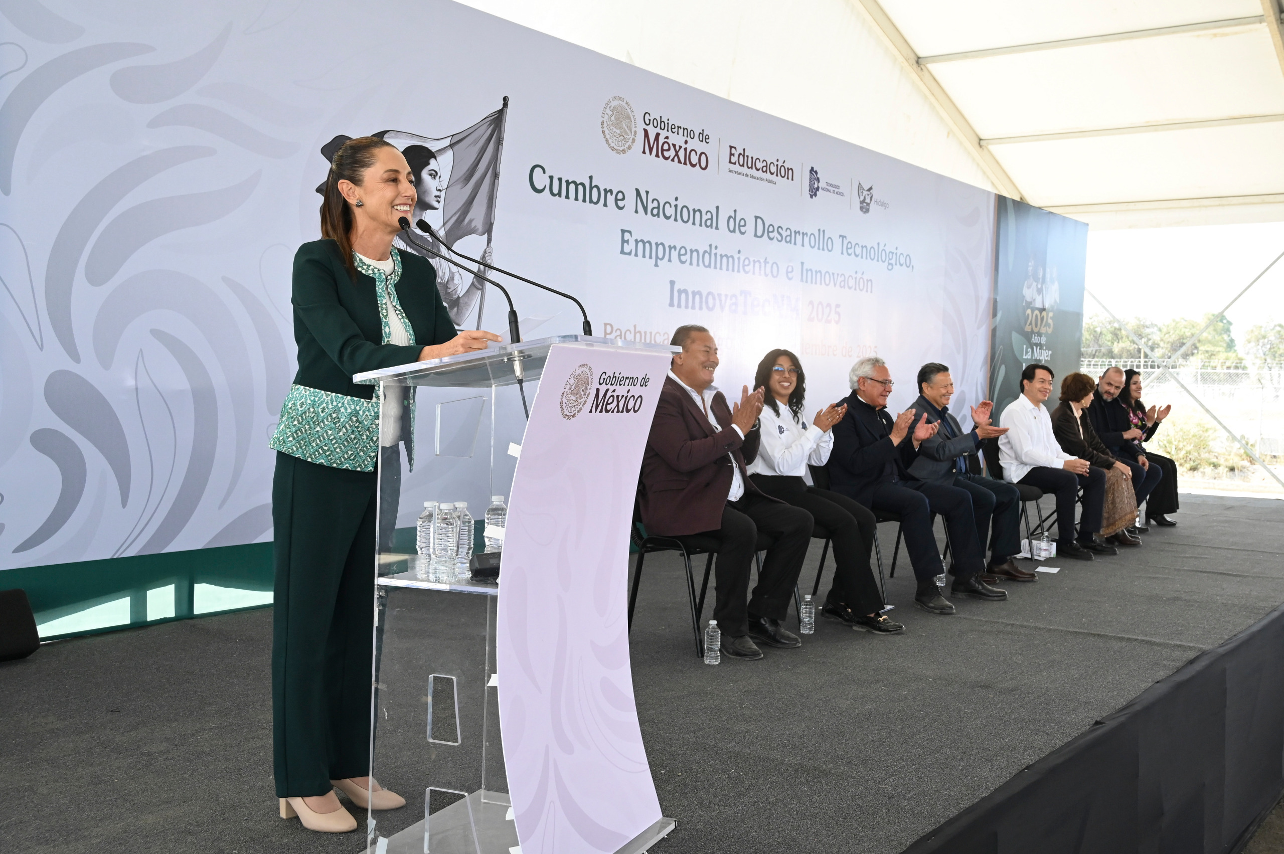 Pachuca, Hidalgo, 26 de noviembre de 2025.- En la Cumbre Nacional de Desarrollo Tecnológico, Emprendimiento e Innovación, InnovaTecNM 2025, la Presidenta Claudia Sheinbaum Pardo anunció la creación del Fondo InnovaTecNM que elegirá proyectos de estudiantes del Tecnológico Nacional de México (TecNM) para su desarrollo con el objetivo de hacer de México una potencia científica y tecnológica.