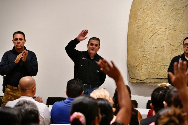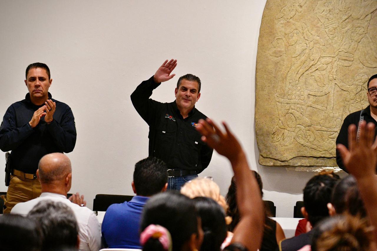 Tapachula, Chiapas.– En el marco de la estrategia de seguridad impulsada por el Gobierno del Estado que encabeza el gobernador Eduardo Ramírez Aguilar, el Dr. y Piloto Aviador Óscar Alberto Aparicio Avendaño, Secretario de Seguridad del Pueblo, sostuvo un encuentro con locatarios de mercados, plazas comerciales y tianguis de Tapachula, junto al presidente municipal Yamil Melgar, con el objetivo de fortalecer las acciones de prevención, vigilancia y proximidad social en estos espacios fundamentales para la economía local.