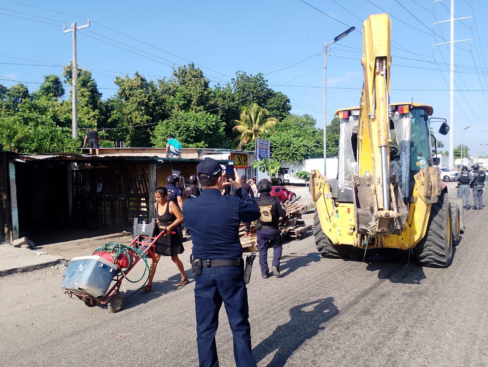 El asentamiento se encontraba además en derecho de vía, sin permisos de ninguna autoridad, con viviendas improvisadas y conexiones irregulares a la red eléctrica de CFE.