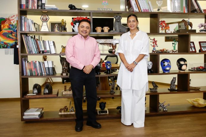 El magistrado presidente del Poder Judicial del Estado de Chiapas, Juan Carlos Moreno Guillén, sostuvo una reunión de trabajo con la presidenta municipal de Jiquipilas, Blanca Yaneth Chiu López, para dialogar sobre acciones e intercambiar experiencias que fortalezcan la labor por la seguridad, el bienestar social y el acceso a la justicia.