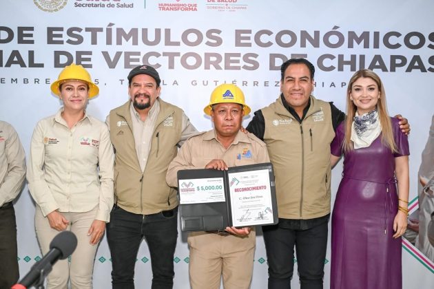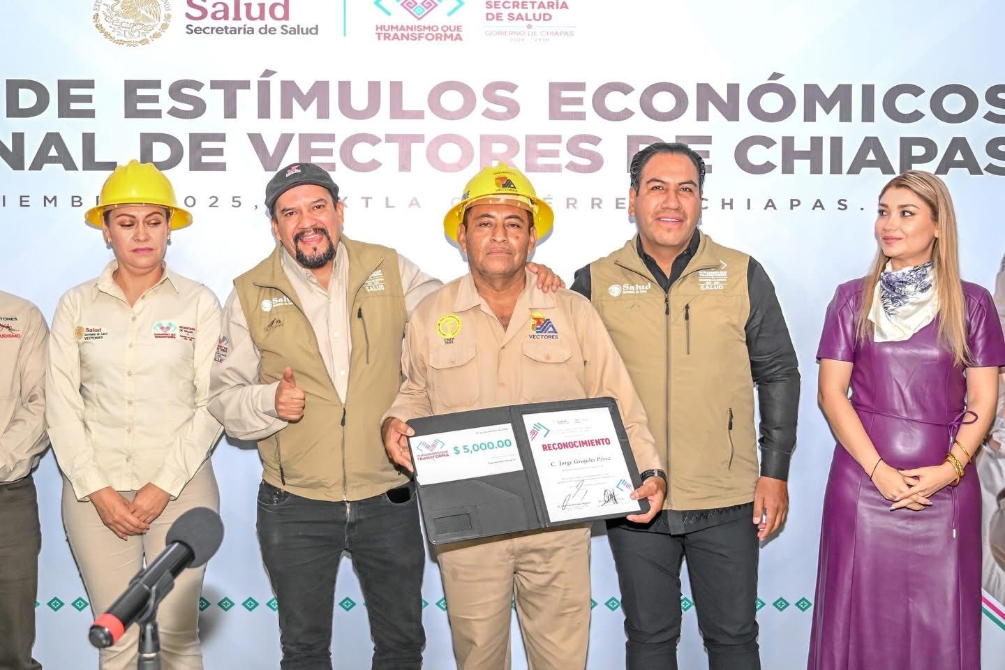 El gobernador Eduardo Ramírez Aguilar encabezó la entrega de estímulos económicos al personal de vectores de Chiapas, a quienes reconoció por la labor humanista, solidaria y responsable que realizan en todos los rincones del estado para prevenir y combatir enfermedades. Destacó que el gobierno de la Nueva ERA valora profundamente su trabajo en favor de la salud de las y los chiapanecos, por lo que anunció que este incentivo será duplicado el próximo año.