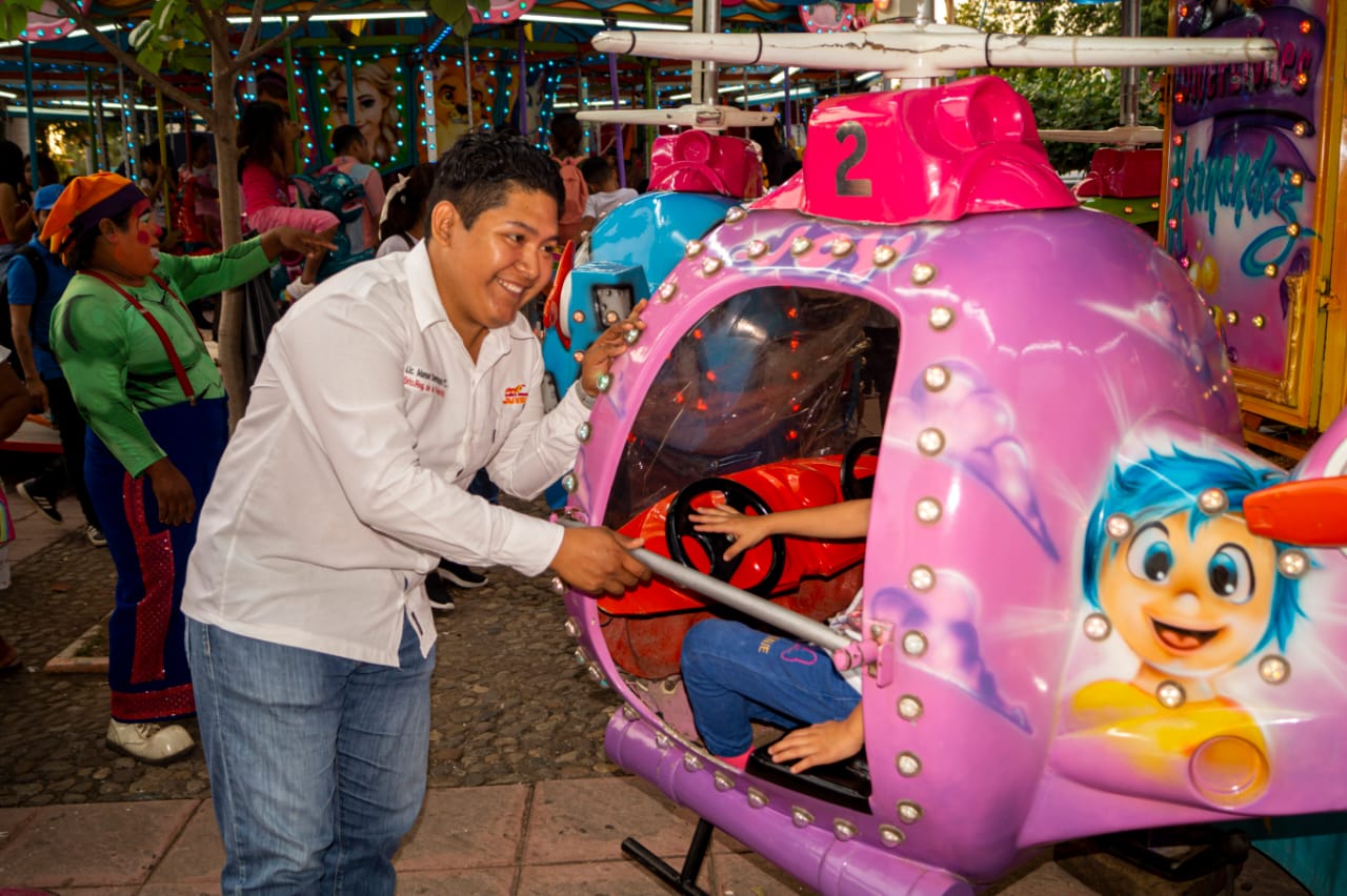 * Más de 200 niñas y niños disfrutaron de juegos mecánicos, regalos y momentos de sana convivencia en el Parque Bicentenario.