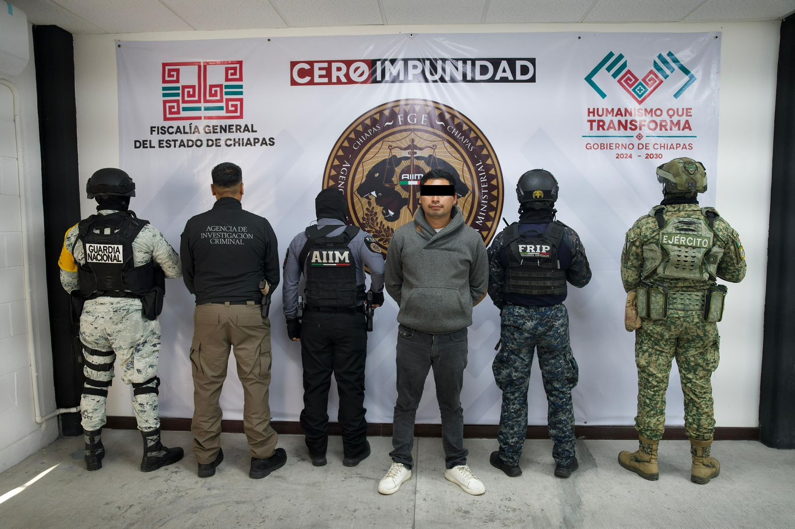 En otro momento, Llaven Abarca informó que luego de la noticia criminal en el barrio Fovissste, del municipio de Arriaga, sobre disparos de arma de fuego en la zona, se implementó de manera inmediata un operativo interinstitucional, con la participación de la Agencia de Investigación e Inteligencia Ministerial, Secretaría de la Defensa Nacional, Guardia Nacional, Secretaría de Marina y Fuerza de Reacción Inmediata Pakal.