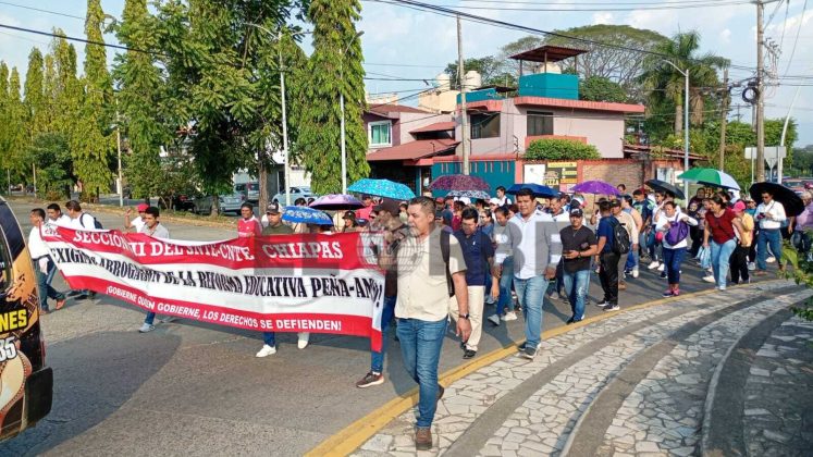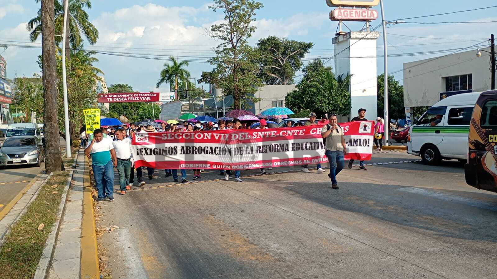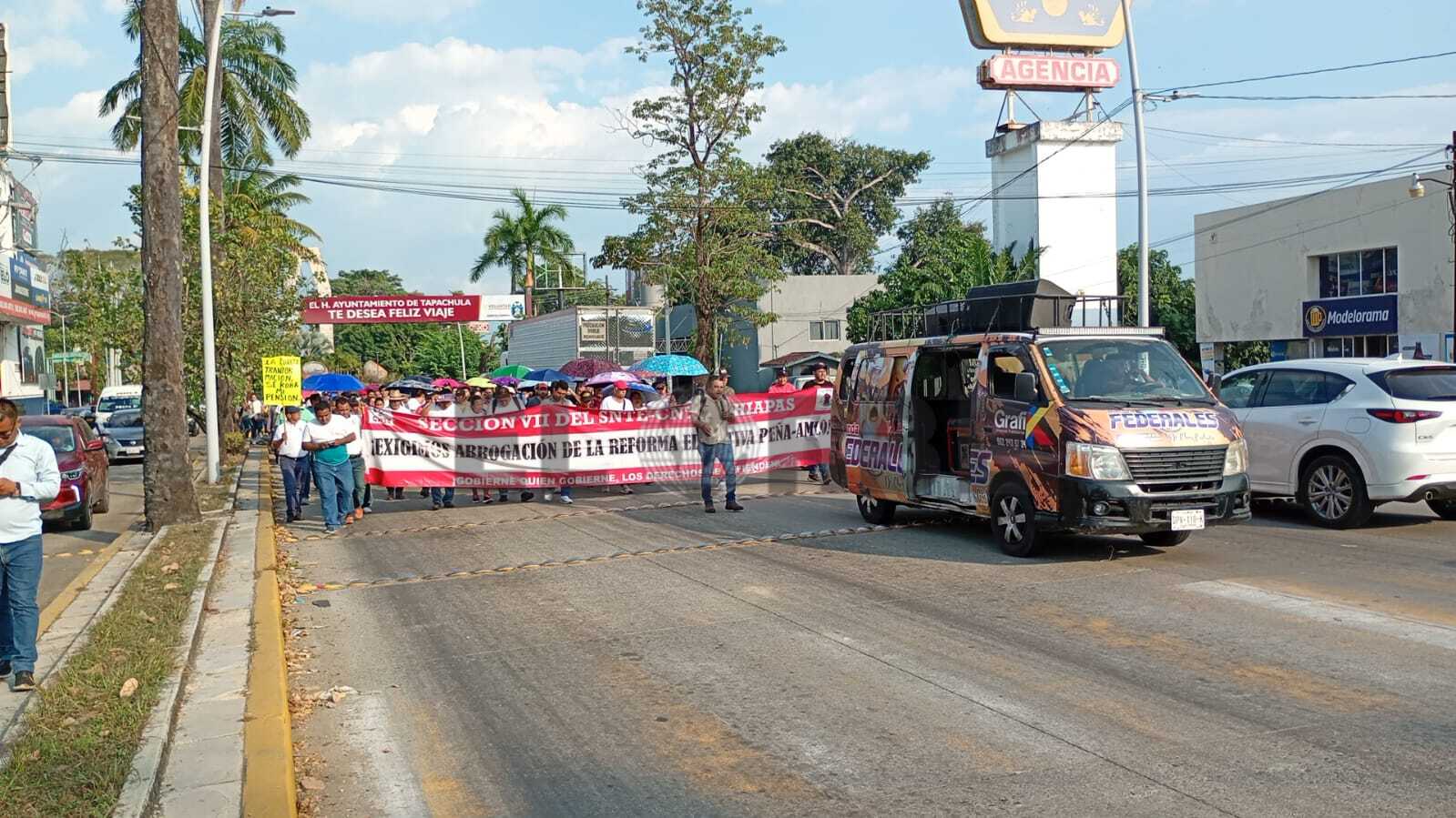 La marcha inició alrededor de las 4:00 de la tarde, desde la entrada oriente de la ciudad, a la altura de la fuente Atzacua, avanzando hacia la clínica hospital del ISSSTE “Dr. Roberto Nettel Flores”, para posteriormente dirigirse al centro de la ciudad, donde el magisterio realizará un pronunciamiento público.
