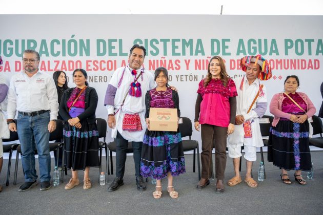 “Como gobernador de Chiapas lo más maravilloso es venir a entregar esta obra de agua potable, porque tener acceso al agua es una gran bendición y ahora la tendrán en sus hogares. También, hagan llegar el mensaje a las comunidades de que invertiremos para que ninguna aula sea de tabla o lámina y piso de tierra. Queremos que las niñas, niños y jóvenes tengan espacios dignos y de calidad”, manifestó.