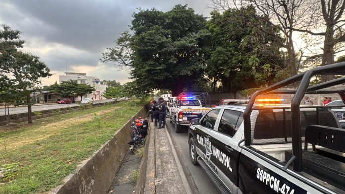 En el lugar fueron localizados un hombre y una mujer dentro del canal de drenaje, quienes se desplazaban en una motocicleta Italika 125, color azul con negro, con placas del estado de Chiapas. Ambos presentaban diversas lesiones de consideración.