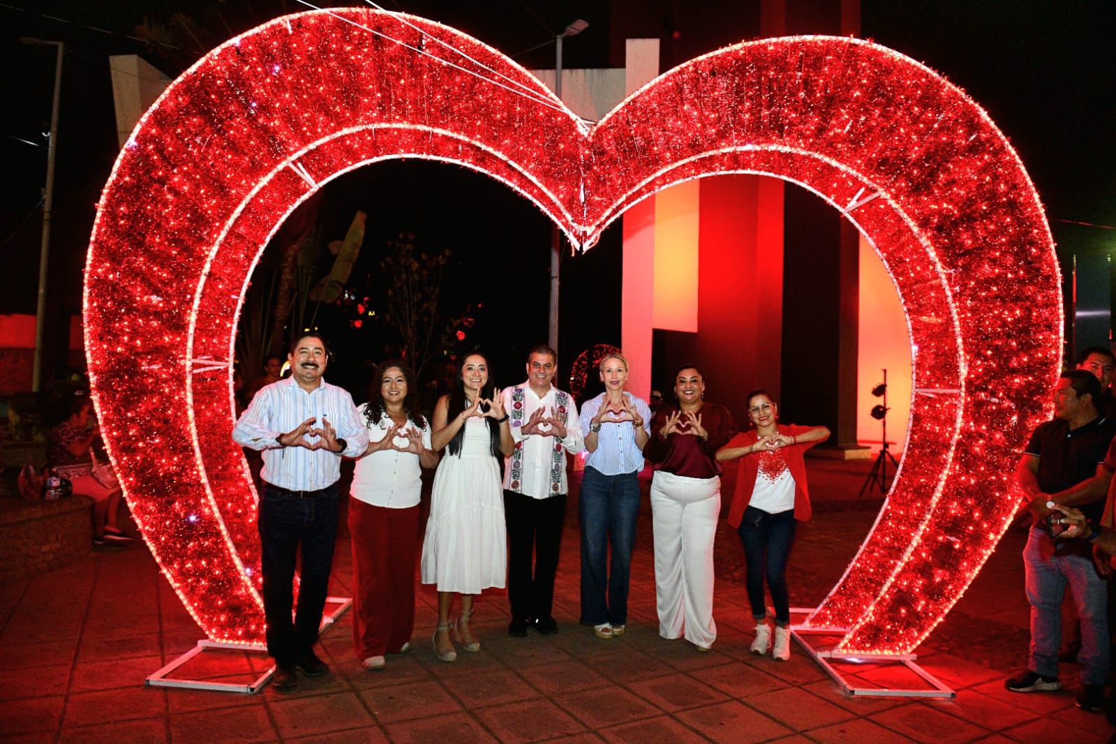 8 de febrero 2026, Tapachula, Chiapas.- El presidente municipal de Tapachula, Yamil Melgar Bravo y la directora general del COBACH, Viridiana Figueroa García en representación del gobernador del estado, Eduardo Ramírez Aguilar, inauguraron los escenarios alusivos al Día del Amor y la Amistad en el parque Bicentenario como parte de la estrategia Tapachula se Vive con Amor y Humanismo.