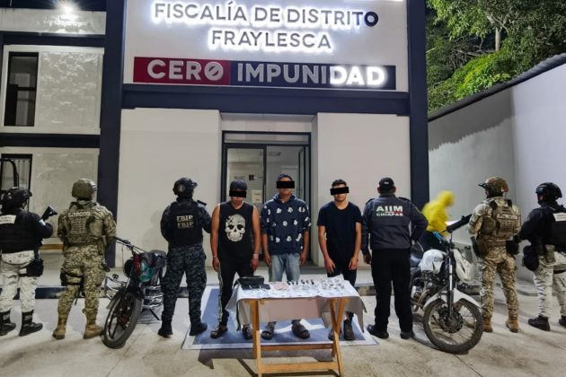 El Grupo Interinstitucional, conformado por la Fiscalía General del Estado, la Secretaría de la Defensa Nacional, la Guardia Nacional y la Secretaría de Seguridad del Pueblo, ejecutaron la detención de Daniel “N”, Carlos “N” y Marcos “N” como presuntos responsables del delito contra la salud en su modalidad de narcomenudeo con fines de comercio, cometido en agravio de la salud pública, por hechos ocurridos en el municipio de Villaflores.