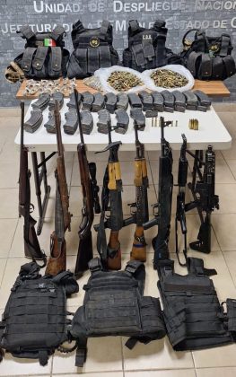 Los hechos se registraron en la comunidad Joaquín Miguel Gutiérrez, donde como resultado de recorridos estratégicos, se logró el aseguramiento de tres armas largas tipo AK-47 calibre 7.62×39; dos armas largas Colt R-15 calibre .223; dos armas largas calibre .22 y un arma larga calibre .308. Asimismo, se aseguraron mil 324 cartuchos calibre 7.62×39, 23 cartuchos calibre .223 y cuatro cartuchos calibre .308, además de 42 cargadores para arma larga; además, se localizaron siete chalecos balísticos y 21 envoltorios que contenían hierba verde y seca con características propias de la marihuana.