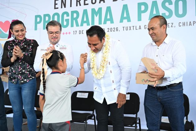 En Tuxtla Gutiérrez, el gobernador Eduardo Ramírez Aguilar, acompañado del secretario del Humanismo, Paco Chacón, encabezó la entrega de calzado deportivo a estudiantes de la Escuela Primaria Salomón González Blanco, como parte del programa A Paso Firme. Durante el acto, destacó que esta estrategia se ampliará a todo Chiapas, priorizando los planteles con mayores necesidades, y reiteró que mantendrá una atención permanente a las demandas del sector educativo para que niñas, niños y jóvenes accedan a mejores oportunidades de desarrollo.