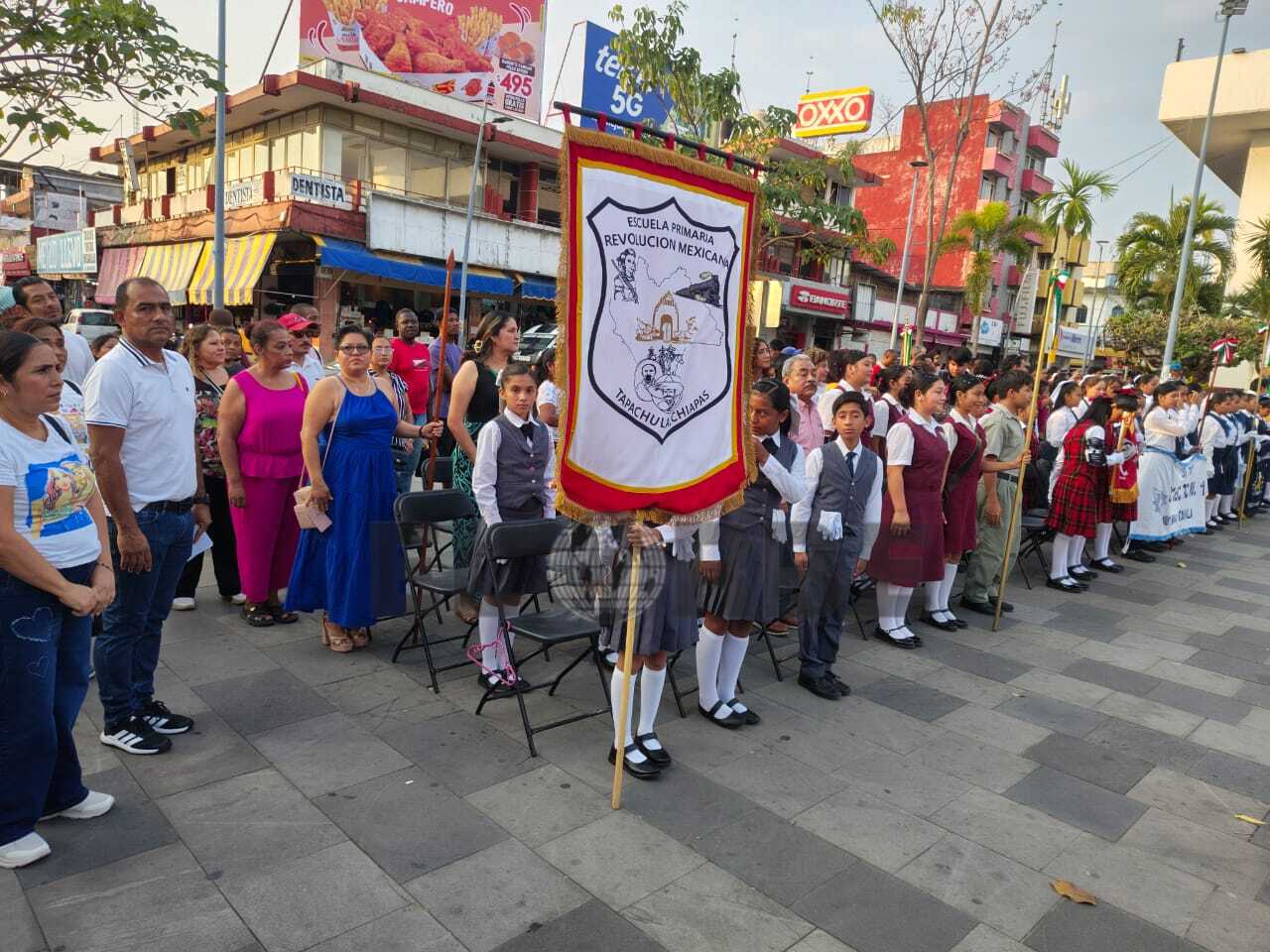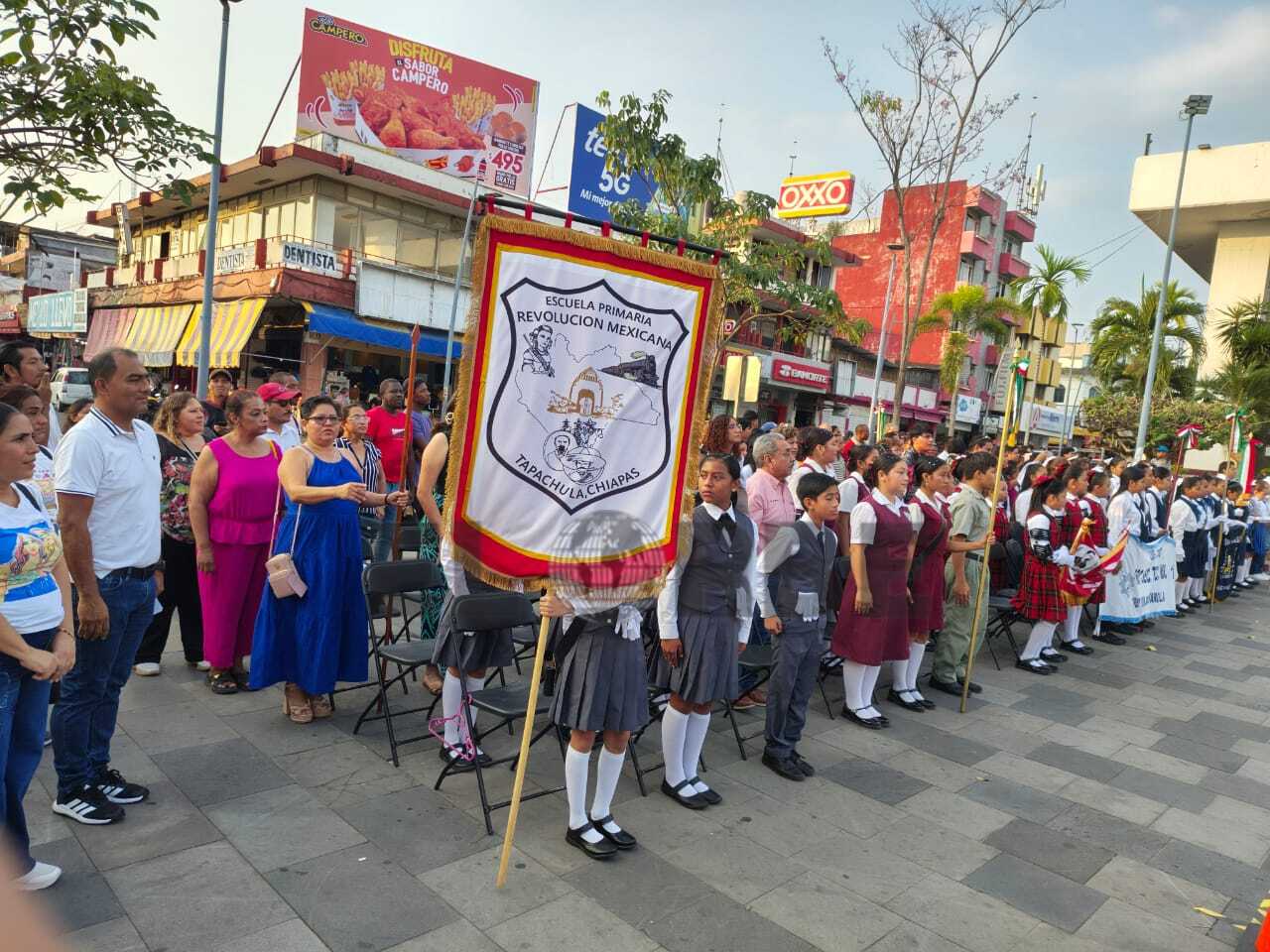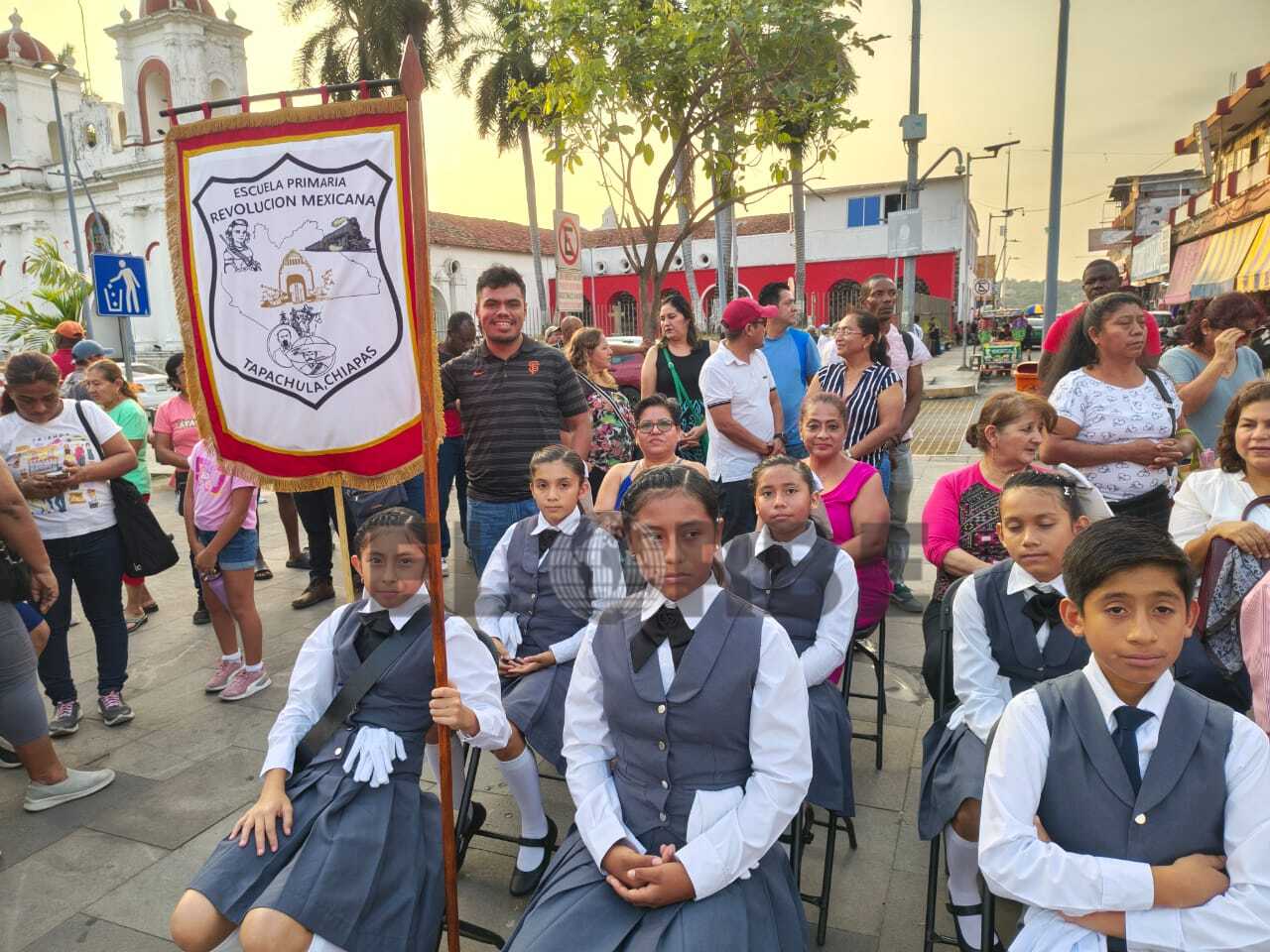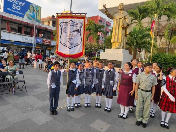 Tapachula, Chiapas; 19 de febrero.— En el marco de las actividades cívicas conmemorativas, la explanada del Palacio Municipal se llenó de orgullo patrio con la realización de la Demostración de Escoltas, evento que reunió a diversas instituciones educativas de nivel primaria y secundaria.