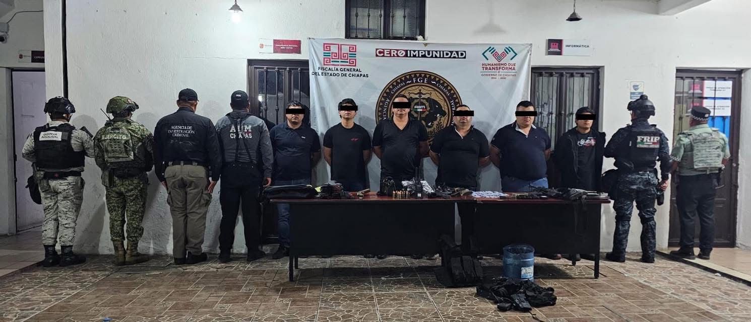 Chiapa de Corzo, Chiapas; 20 de febrero de 2026.- La Secretaría de Seguridad del Pueblo (SSP) a través de la Fuerza de Reacción Inmediata Pakal (FRIP) y la Guardia Estatal Preventiva (GEP) en coordinación con la Agencia de Inteligencia e Investigación Ministerial (AIIM) de la Fiscalía General del Estado (FGE), la Guardia Nacional (GN), Ejército Nacional y la Agencia de Investigación Criminal (AIC) de la Fiscalía General de la República (FGR), da a conocer que derivado de patrullajes preventivos y disuasivos se realizó la detención en flagrancia de seis personas del sexo masculino en el municipio de Chiapa de Corzo.