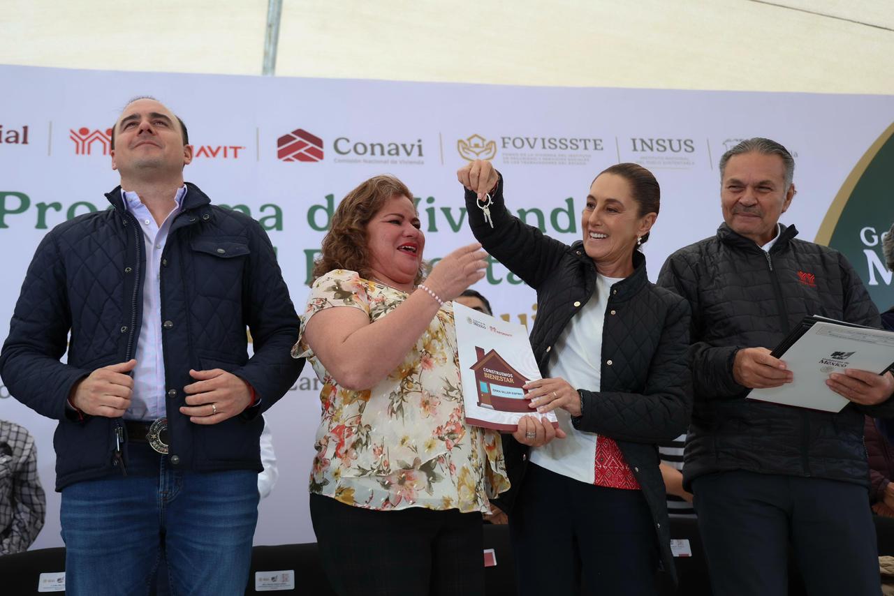 En lo que va de 2026, la Jefa del Ejecutivo Federal ha entregado 738 viviendas en 10 estados: 48 en Michoacán, 200 en Veracruz, 44 en Tamaulipas, 64 en Yucatán, 96 en Chiapas, 80 en Quintana Roo, 48 en Sonora, 53 en Nuevo León, 45 en Zacatecas y las 60 de este sábado en Coahuila.