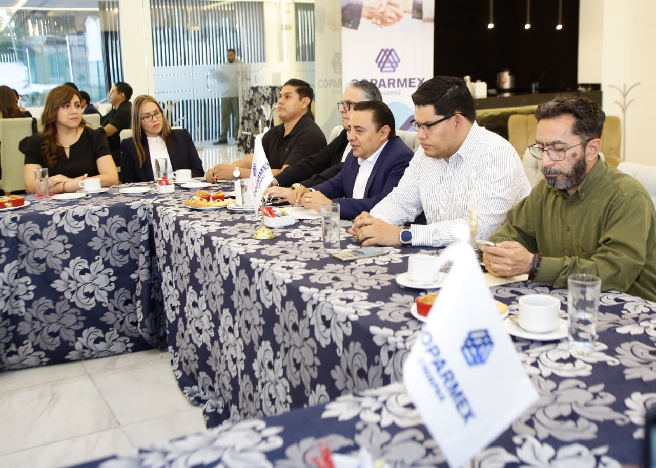 El magistrado presidente del Poder Judicial, Juan Carlos Moreno Guillén, atendiendo la invitación del presidente del Consejo Directivo de la Confederación Patronal de la República Mexicana (Coparmex) Chiapas, Édgar Axel Benítez Aguilar, participó en su Sesión Ordinaria, realizada en esta ciudad capital.