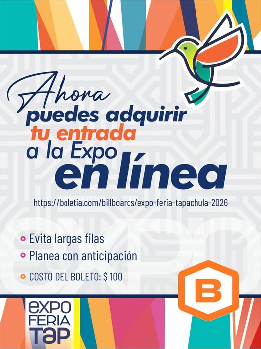 ADQUIERE TU ENTRADA A LA EXPO -EN LÍNEA- y evita las grandes colas. https://boletia.com/billboards/expo-feria-tapachula-2026 Más fácil llegar. Más fácil celebrar. Mantendremos también la taquilla tradicional. Costo del boleto: $...