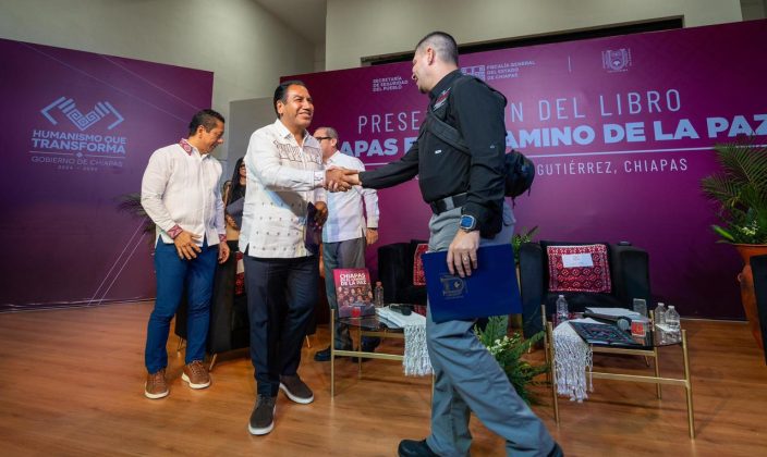 Tuxtla Gutiérrez, Chiapas; 04 de marzo de 2026.- Durante la presentación del libro “Chiapas en el camino de la paz” del gobernador Eduardo Ramírez Aguilar, el secretario de Seguridad del Pueblo, Óscar Alberto Aparicio Avendaño, reconoció el liderazgo y la voluntad política del mandatario estatal para restablecer la paz en todos los rincones del estado, a través de una estrategia integral que se trabaja y se construye todos los días.