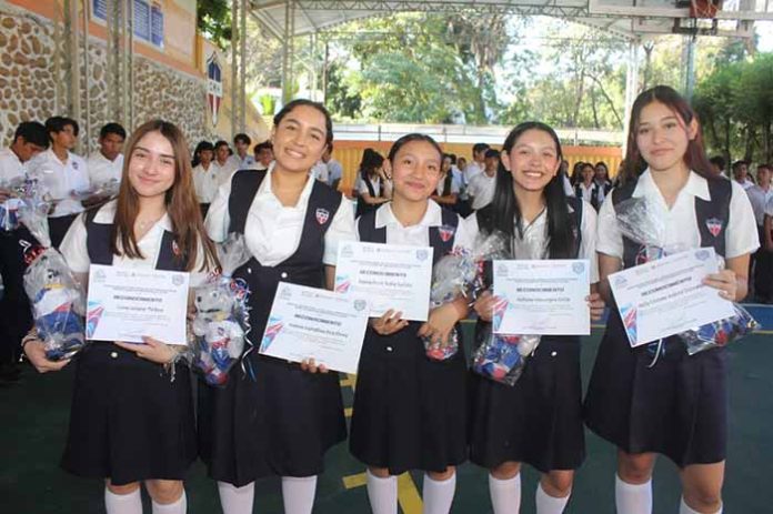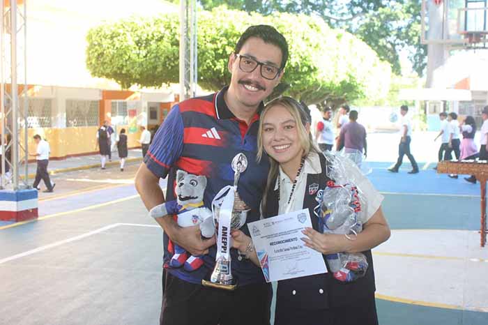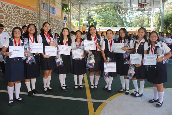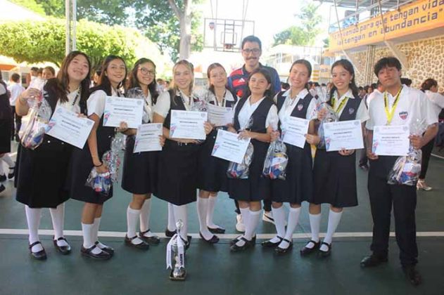 Durante el acto cívico semanal, la institución que dirige el Pbro. Gonzalo Amarante Vázquez Zavala reconoció el esfuerzo de los estudiantes, quienes representaron al colegio en disciplinas deportivas y culturales como basquetbol, futbol, voleibol, atletismo, natación, ajedrez, pintura, baile moderno y folklórico, entre otras.