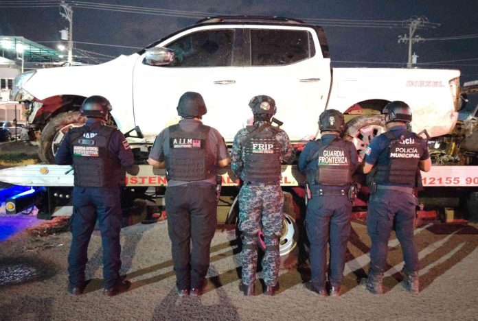 Derivado de estas acciones, durante la madrugada del 5 de marzo fue asegurada, sobre la vía antes del puente nuevo rumbo a Mazatán, una camioneta Nissan Frontier blanca con placas del estado de Chiapas, abandonada tras una persecución y relacionada con el reporte.