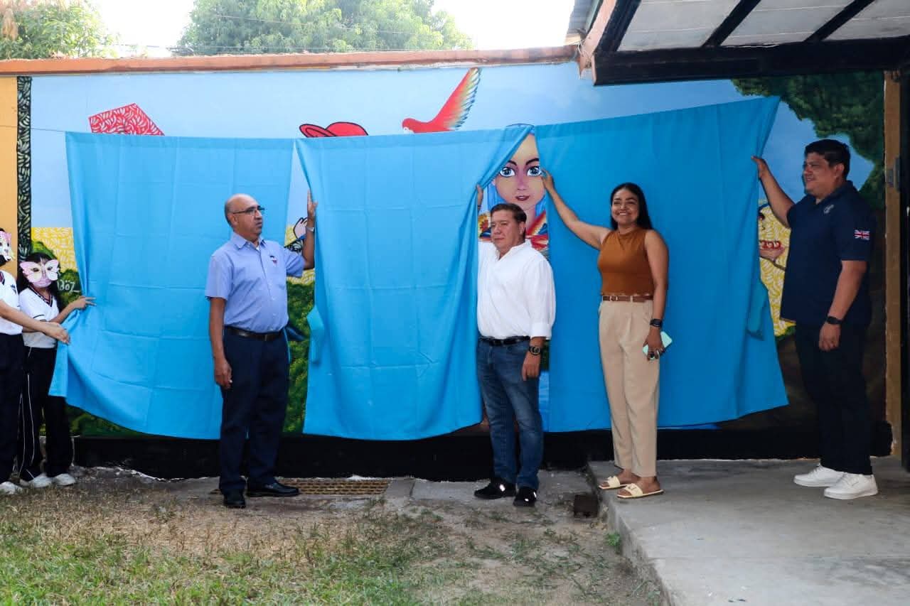 En unidad con la comunidad escolar del Colegio Miguel Hidalgo (CMH), el Ayuntamiento de Tapachula, a través de la Secretaría de Desarrollo Urbano y Ecología (SEDURBE), realizó la develación del mural y acciones de reforestación del proyecto ambiental “Huellitas Verdes”, una iniciativa que busca fortalecer la conciencia ecológica entre las nuevas generaciones.