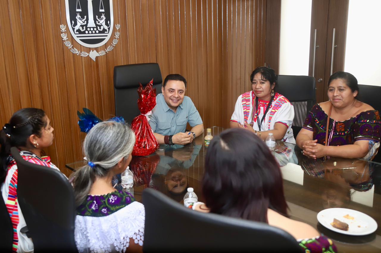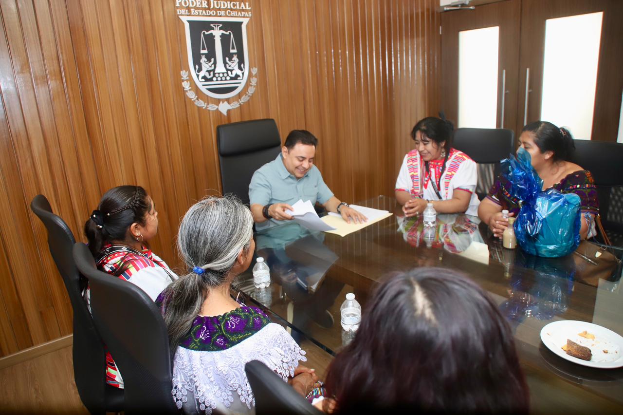El magistrado presidente del Poder Judicial del Estado de Chiapas, Juan Carlos Moreno Guillén, recibió en la sede judicial de Tuxtla Gutiérrez la visita de un grupo de mujeres productoras del programa “Sembrando Vida”, provenientes de las comunidades Patihuitz, Sibacá, 15 de Marzo y San Antonio Toniná de Ocosingo, Chiapas.
