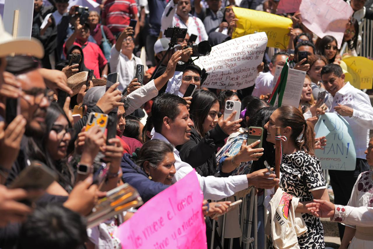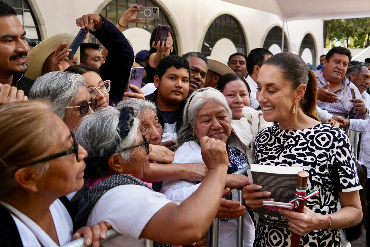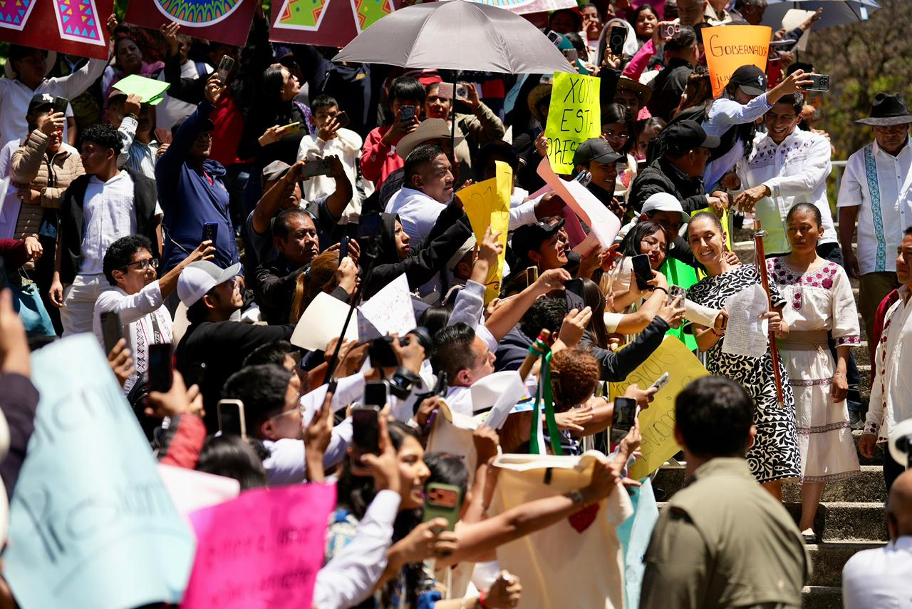 En Oaxaca, la Jefa del Ejecutivo Federal destacó desde Guelatao que el legado de Benito Juárez vive en la Cuarta Transformación, nombrando a Margarita Maza como la primera embajadora histórica del país. Para concluir su gira este fin de semana, en Santo Domingo, Tehuantepec*, presentó la Cartilla de los Derechos de las Mujeres en 67 lenguas y entregó reconocimientos a mujeres traductoras de lenguas indígenas.