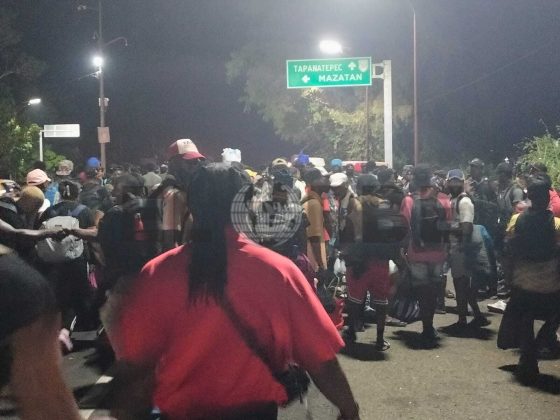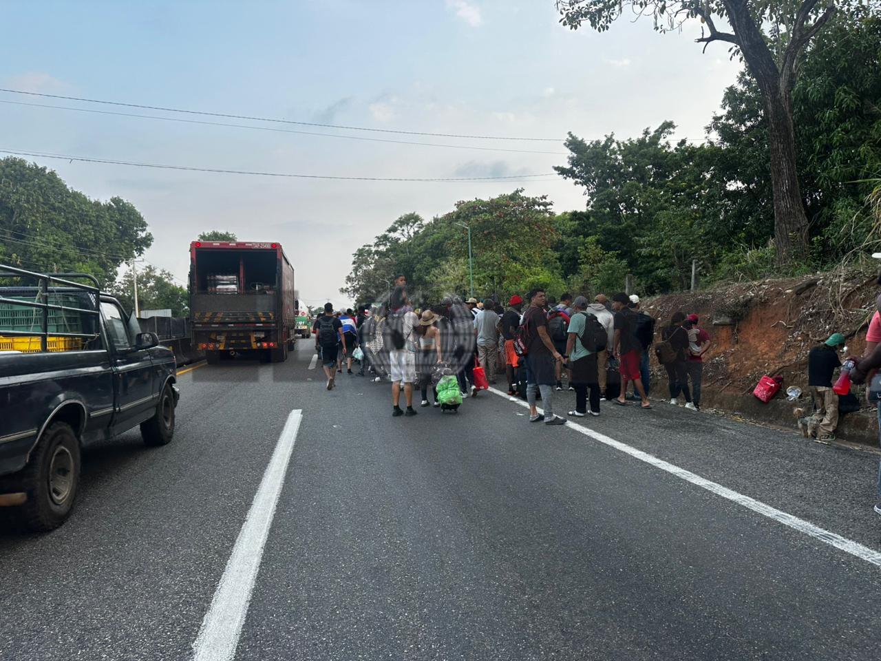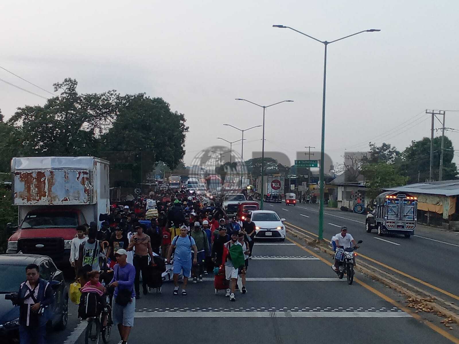 Huehuetán, Chiapas, 25 de marzo de 2026.– Cientos de migrantes de diversas nacionalidades recorren ya la costa de Chiapas, luego de haber salido de Tapachula la noche del martes, con el objetivo de llegar al centro del país, donde esperan recibir una mejor atención por parte de las autoridades migratorias.