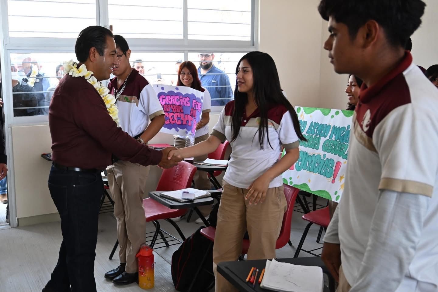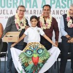 celebró su visita, así como la entrega de beneficios para las y los estudiantes, quienes,